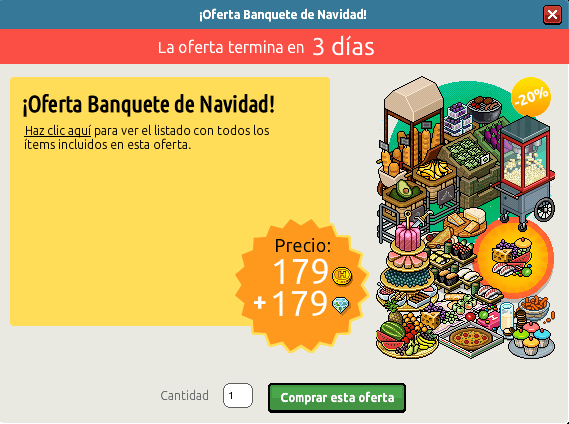 La oferta de hoy, recibe el nombre de Oferta Banquete de Navidad. Dicha oferta, como puedes ver en las imágenes, tiene un coste de 179