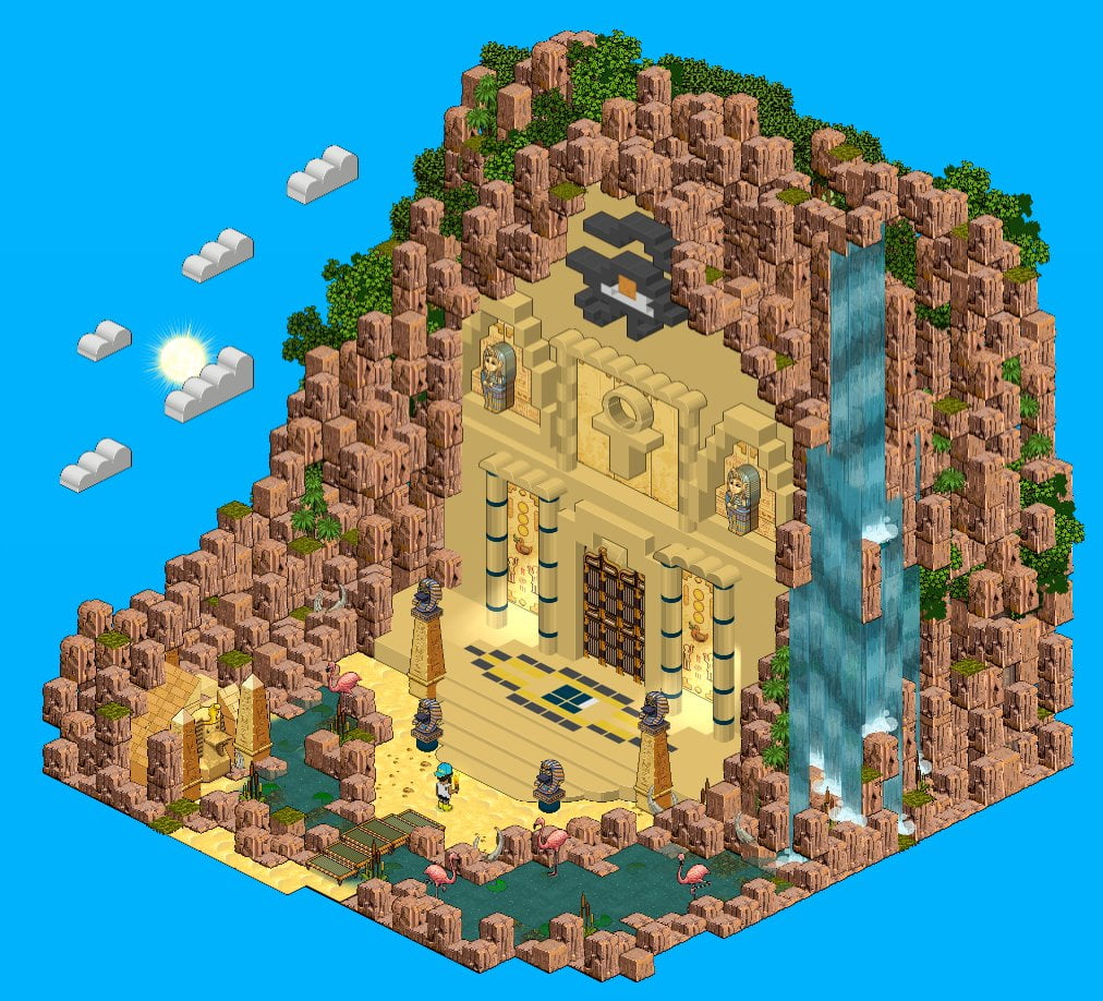 La primera sala que seleccionamos es la sala de chico.quik, quien logró dejarnos con la boca abierta con su sala egipcia. De esta sala queremos remarcar la gran habilidad de chico.quik para colocar y apilar las rocas de manera que la sala quedara muy natural y muy realista. ¡Toda una obra artística!