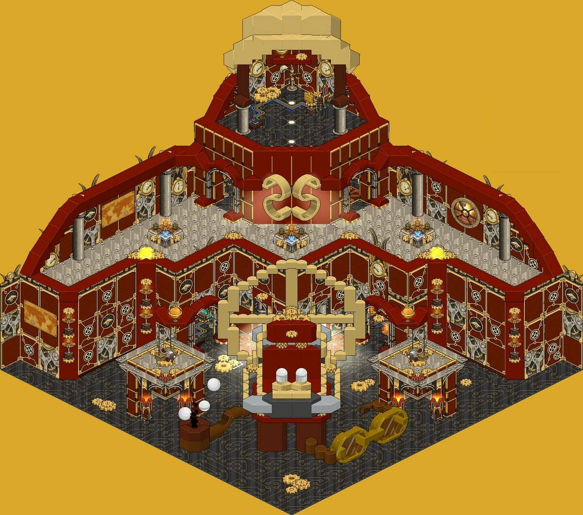 Y finalmente, pero no menos importante tenemos la sala de marthacecilia. En dicha sala podemos observar una increíble colocación de los furnis Steampunk que logró alzarla con la victoria. Marthacecilia aprovechó muy bien su habilidad con los bloques para crear todo tipo de detalles y hacer de la sala una auténtica maravilla.