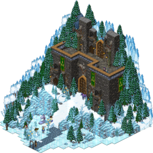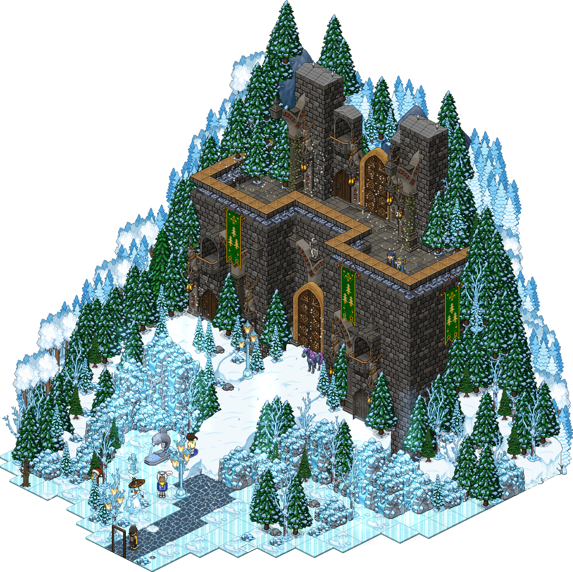 En esta sala podemos apreciar un hermoso castillo, también construido por Pulx. De esta sala quisimos remarcar la espectacular fuente helada que construyo con un mismo furni apilado en las alturas exactas. ¡Increíble!