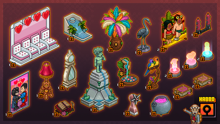 Estas reliquias están desbloqueadas, es decir, se pueden usar en TODOS los hoteles de Habbo, incluyendo Habbo X. Además, se pueden comprar y vender a cambio de la criptomoneda de ETH en el mercado de TokenTrove.