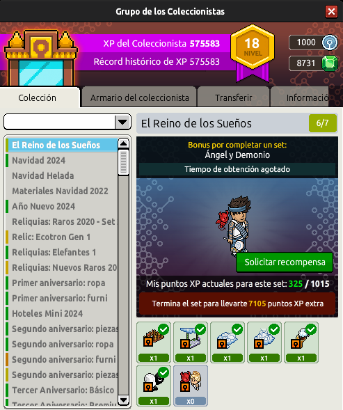 En el caso de la Collector Wallet, el reclamo se realiza en la herramienta del ‘Grupo de los Coleccionistas‘, dentro de la pestaña de ‘Colección‘ y seleccionando la opción de ‘Collector Wallet‘. Luego pulsa en el botón verde ‘Solicitar recompensa‘.