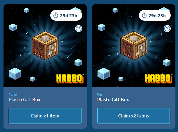 Podrás reclamar una caja por cada Habbo Avatar que tengas y dos cajas por cada Avatar Crafteado que poseas en tu cartera de Metamask.