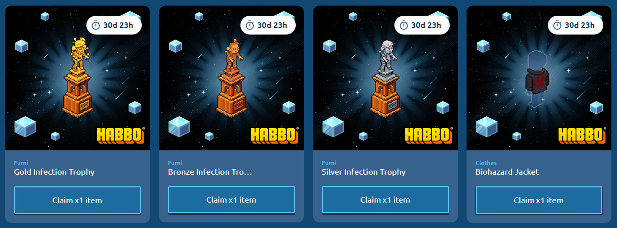 – Niveles 20-25: Trofeo Contagio de Bronce, Plata, Oro y Chaqueta Riesgo Biológico.