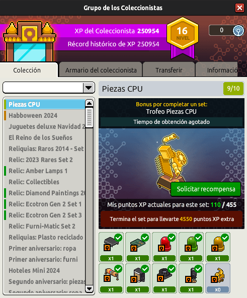 En el caso de la Collector Wallet, el reclamo se realiza en la herramienta del ‘Grupo de los Coleccionistas‘, dentro de la pestaña de ‘Colección‘ y seleccionando la opción de ‘Collector Wallet‘. Luego pulsa en el botón verde ‘Solicitar recompensa‘.