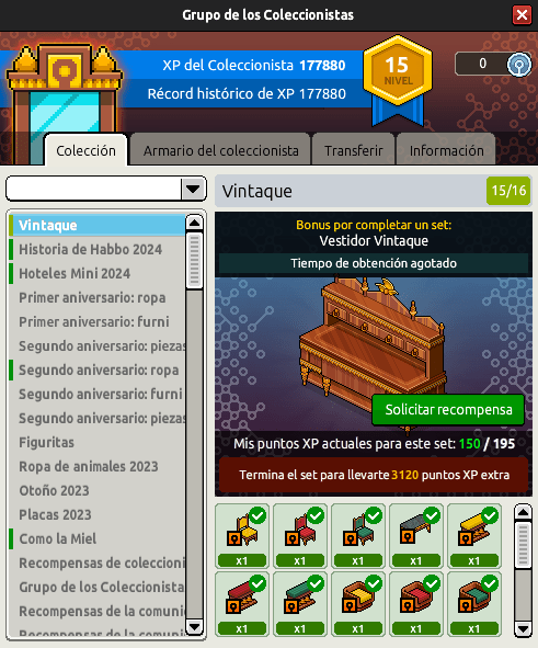 En el caso de la Collector Wallet, el reclamo se realiza en la herramienta del ‘Grupo de los Coleccionistas‘, dentro de la pestaña de ‘Colección‘ y seleccionando la opción de ‘Collector Wallet‘. Luego pulsa en el botón verde ‘Solicitar recompensa‘.