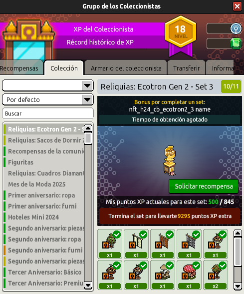 Estos reclamos se encuentran disponibles para quienes han tenido completos los sets de coleccionables ‘Cuadros Diamante 2019‘, ‘Ecotron Gen 2 – Set 3‘ y/o ‘Sacos de Dormir 2‘ en la cartera de Metamask o en la Collector Wallet, a fecha de hoy.