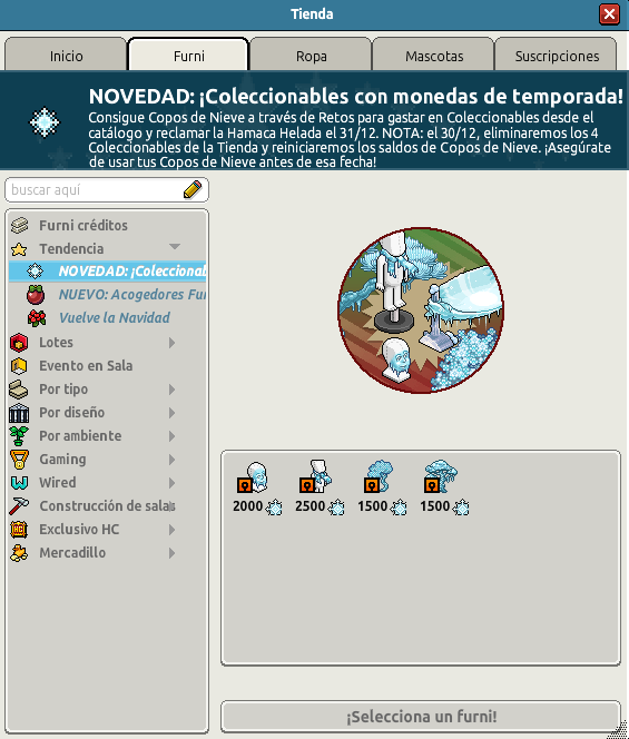 [COL] En venta: Árboles, Cara y Bufanda Congelados Hace 1 año Dantempo 9 Popular Archivada Información de la publicación Publicada: 03/12/2024 13:04:24 H.P.E. Autor: Dantempo Último comentario:Tobicito Ir Visitas: 373 Información general Categoría: Furnis y prendas en venta Tipo: Furnis y prendas coleccionables Precio: Entre 1500 y 2500 Fecha de inicio de venta: 03/12/2024 Fecha de final de venta: 30/12/2024 Lugar de venta: Catálogo Imágenes de los ítems y de catálogo
