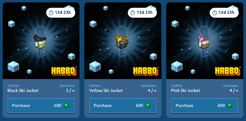 [COL] En venta: Chaquetas de esquí Hace 2 años Dantempo 10 Popular Archivada Información de la publicación Publicada: 21/02/2024 13:04:53 H.P.E. Autor: Dantempo Último comentario:@ngelytox Ir Visitas: 401 Información general Categoría: Prendas en venta Tipo: Prendas coleccionables Precio: 600 Fecha de inicio de venta: 21/02/2024 Fecha de final de venta: 06/03/2024 Lugar de venta: Tienda de Coleccionables Imágenes de las prendas y de la Tienda de Coleccionables Ir a la Tienda de Coleccionables