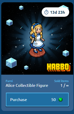 [COL] En venta: Coleccionable Figurita de Alicia Hace 12 meses Kyovyan 10 Popular Archivada Información de la publicación Publicada: 07/05/2025 13:02:42 H.P.E. Autor: Kyovyan Último comentario:@ngelytox Ir Visitas: 492 Información general Categoría: Furni en venta Tipo: Furni coleccionable Precio: 50 Fecha de inicio de venta: 07/05/2025 Fecha de final de venta: 21/05/2025 Lugar de venta: Tienda de Coleccionables Imágenes del ítem y de la Tienda de Coleccionables Ir a la Tienda de Coleccionables Bonus ítem de la colección