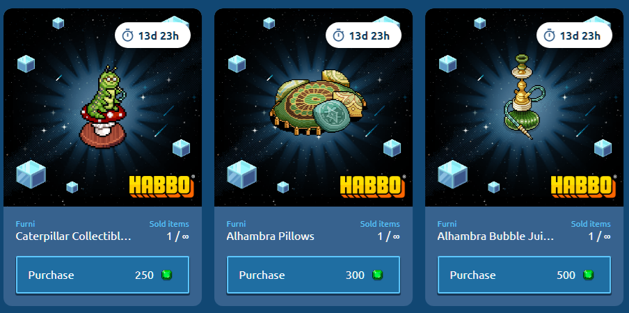 [COL] En venta: Coleccionable Figurita de Oruga, Pipa de Zumo y Cojines Alhambra Hace 5 meses Dantempo 8 Popular Archivada Información de la publicación Publicada: 21/05/2025 13:15:19 H.P.E. Autor: Dantempo Último comentario:Diego Ir Visitas: 249 Información general Categoría: Furnis en venta Tipo: Furnis coleccionables Precio: Entre 250 y 500 Fecha de inicio de venta: 21/05/2025 Fecha de final de venta: 04/06/2025 Lugar de venta: Tienda de Coleccionables Imágenes de los ítems y de la Tienda de Coleccionables Ir a la Tienda de Coleccionables Bonus ítem de la colección