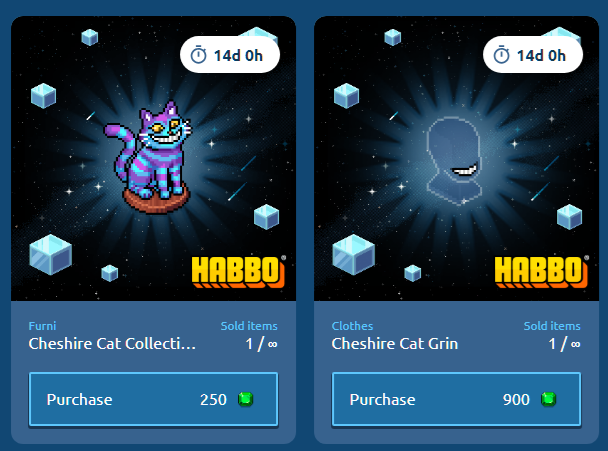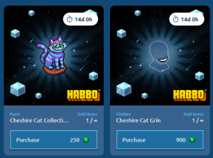 Categoría: Furni y prenda en venta Tipo: Furni y prenda coleccionables Precios: 250 y 900 Fecha de inicio de venta: 14/05/2025 Fecha de final de venta: 28/05/2025 Lugar de venta: Tienda de Coleccionables