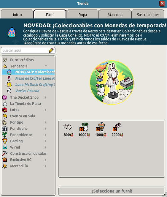 Tipo: Furnis y prendas coleccionables