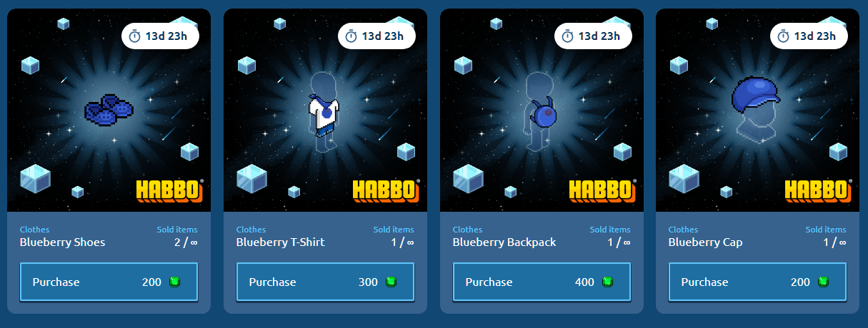 Me gusta la colección como tal pero no la usaría mucho en Habbo, al igual que la colección frambuesa y fresa, no sé si al final las compraré o no.