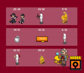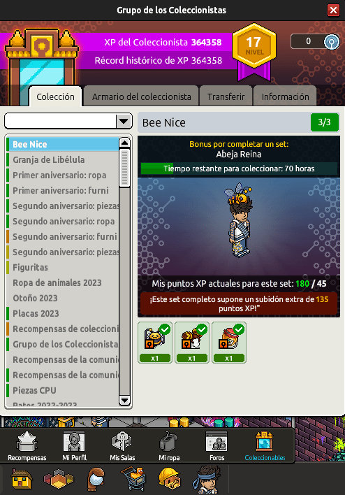 Para saber los ítems coleccionables que conforman cada uno de los sets coleccionables, puedes consultarlos en el apartado ‘Collectibles‘ de la página web oficial de Habbo Collectibles o dentro de Habbo, en el icono de ‘Coleccionables‘ y en la pestaña de ‘Colección‘.