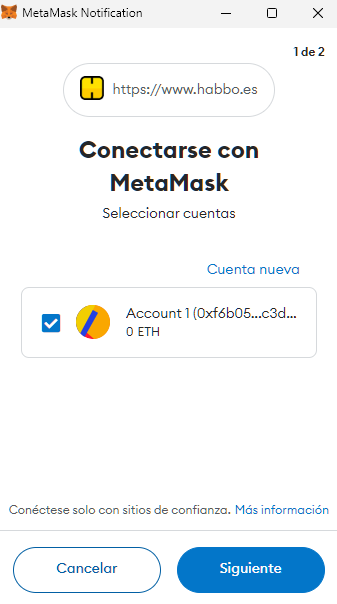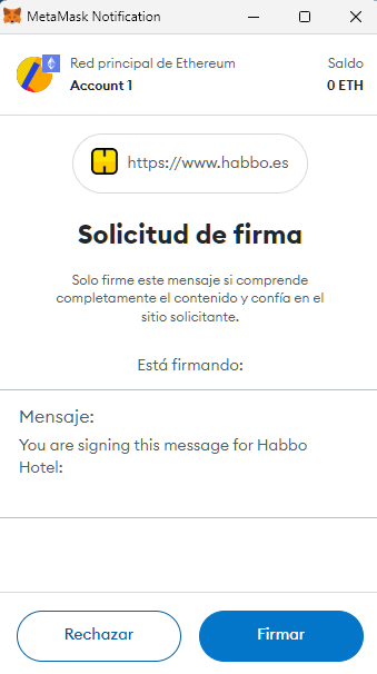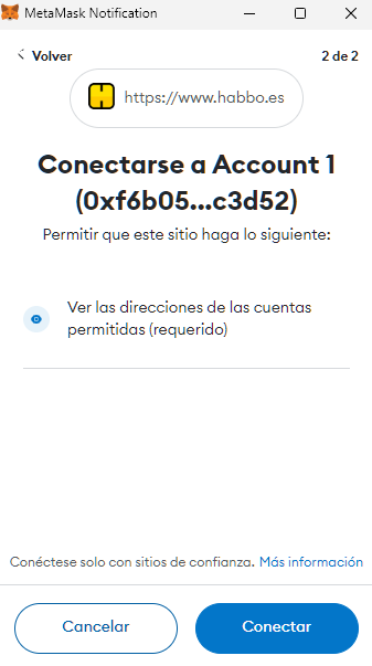 ¡Felicidades! Tu cartera de Metamask se ha vinculado con tu cuenta de Habbo de manera satisfactoria.