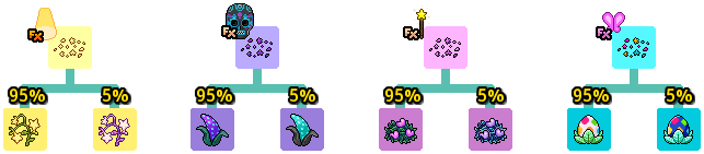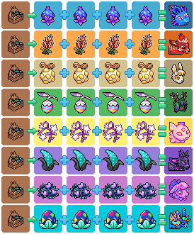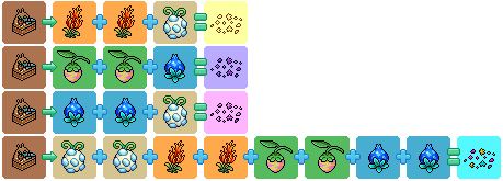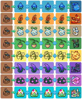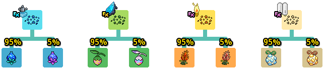 Por otra parte, las cuatro plantas anteriores del 95% se pueden combinar para craftear otras cuatro semillas elementales diferentes (luz, oscuridad, hada y arcoíris) que NO se pueden conseguir a partir del crackable.