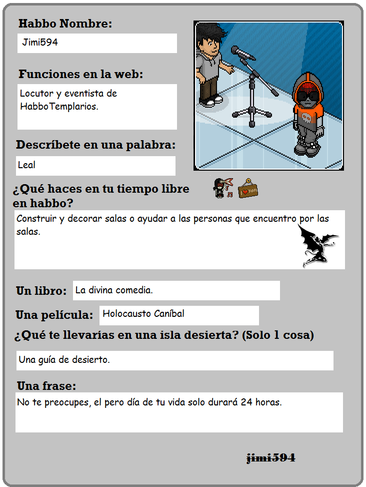 ¿Ya sabes quién es? Por los que aún no lo tienen claro os daremos una última pista. Él, es el miembro más rockero de HabboTemplarios y lo demuestra en todas sus transmisiones. ¡Efectivamente! Hablamos de jimi594.