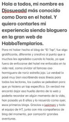 Para mi ser bloguero ha sido una manera de aprender, de crecer y mejorar, ha sido un lugar de disfrutar, crear y soñar. Un sitio donde todo es posible y puedes hacer prácticamente lo que quieras, donde los límites no existen. Entré en templarios, siendo un joven que acababa de terminar el bachillerato y me voy tras la carrera, el máster y conseguir el trabajo de mis sueños junto a la persona que quiero.