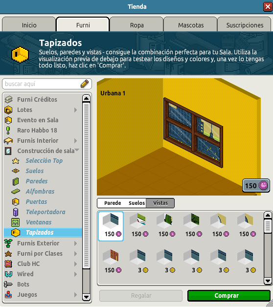 Para poder conseguir las recompensas Diseñador de Paisajes, deberás comprar vistas para tu sala y colocarlas. A continuación, irás recibiendo las recompensas, según la cantidad de vistas que coloques en tu sala: