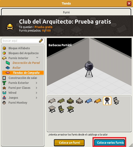 Para poder conseguir las recompensas Diseñador del Club de Arquitecto, deberás ir colocando furnis desde el panel de Club de Arquitectos, e ir poniendo furnis en tu sala. A continuación, irás recibiendo las recompensas, según la cantidad de furnis que coloques: