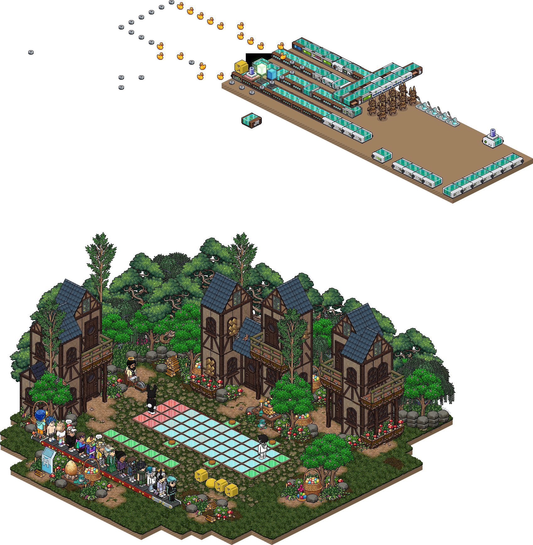 Los primeros 80 Habbos en entrar en la sala Aldea del Conejo Abandonada – Reunión; llevando puestas las 5 placas ganarán una placa exclusiva de Robin Rabbit: