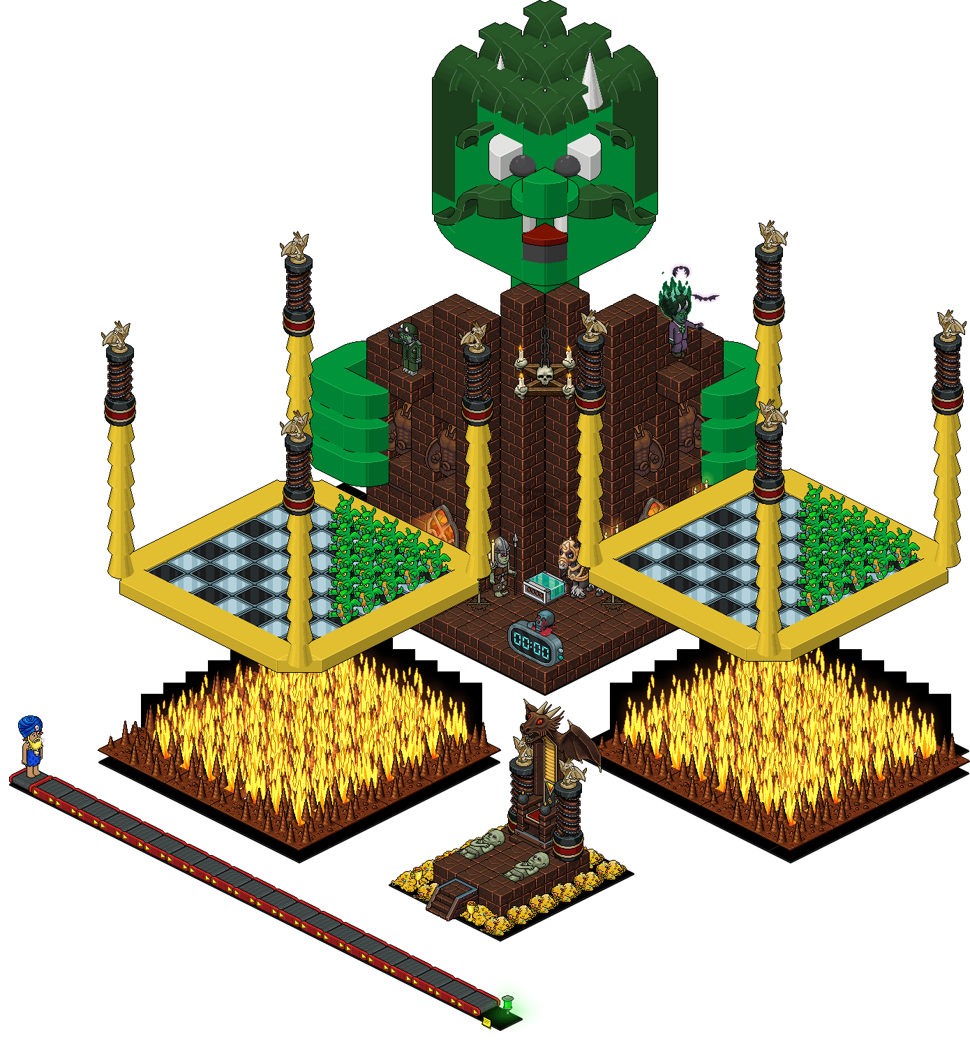 Hay tres capas de casillas y debajo de ellas está el fuego, así que asegúrate de NO caer en él.