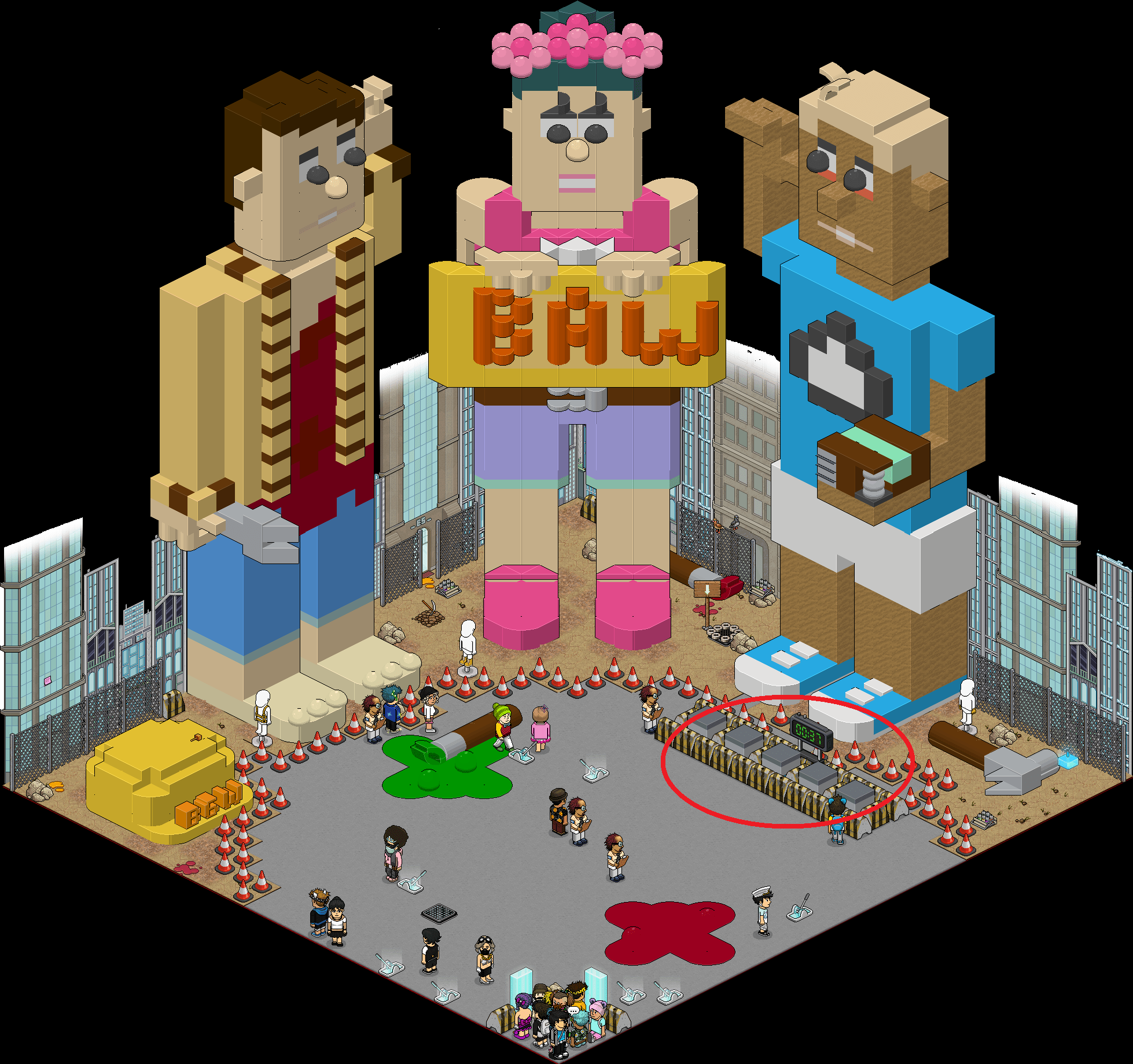 2.: Cuando no haya ninguna mancha de pintura rosa saldrá una palanca. ¡Haz click en ella para acceder al teleport y ganar tu placa!