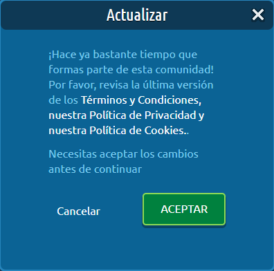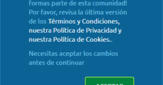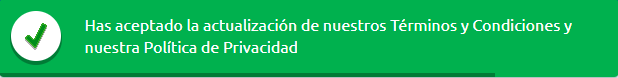 Una vez hayas aceptado los nuevos Términos y Condiciones aparecerá una ventana de confirmación como esta:
