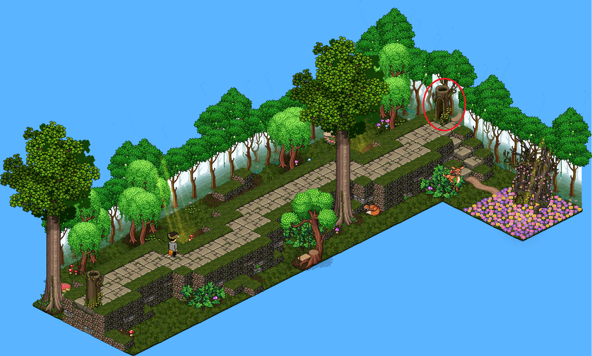 Lo primero que deberás hacer es entrar a la sala de Sefos llamada «[EFT] Cuento de Hadas: Sala de Inicio» y pisar la casilla roja que te mostramos en la imagen para, posteriormente, acceder por el teleport: