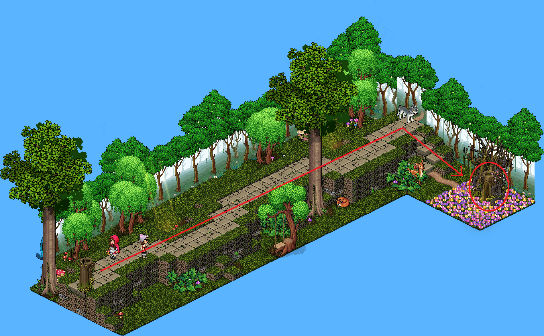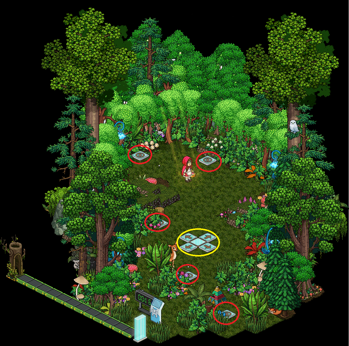 Lo primero que deberás hacer es entrar a la sala de Sefos llamada «[EFT] Cuento de Hadas: Sala de Inicio» y pisar la casilla roja que te mostramos en la imagen para, posteriormente, acceder por el teleport: