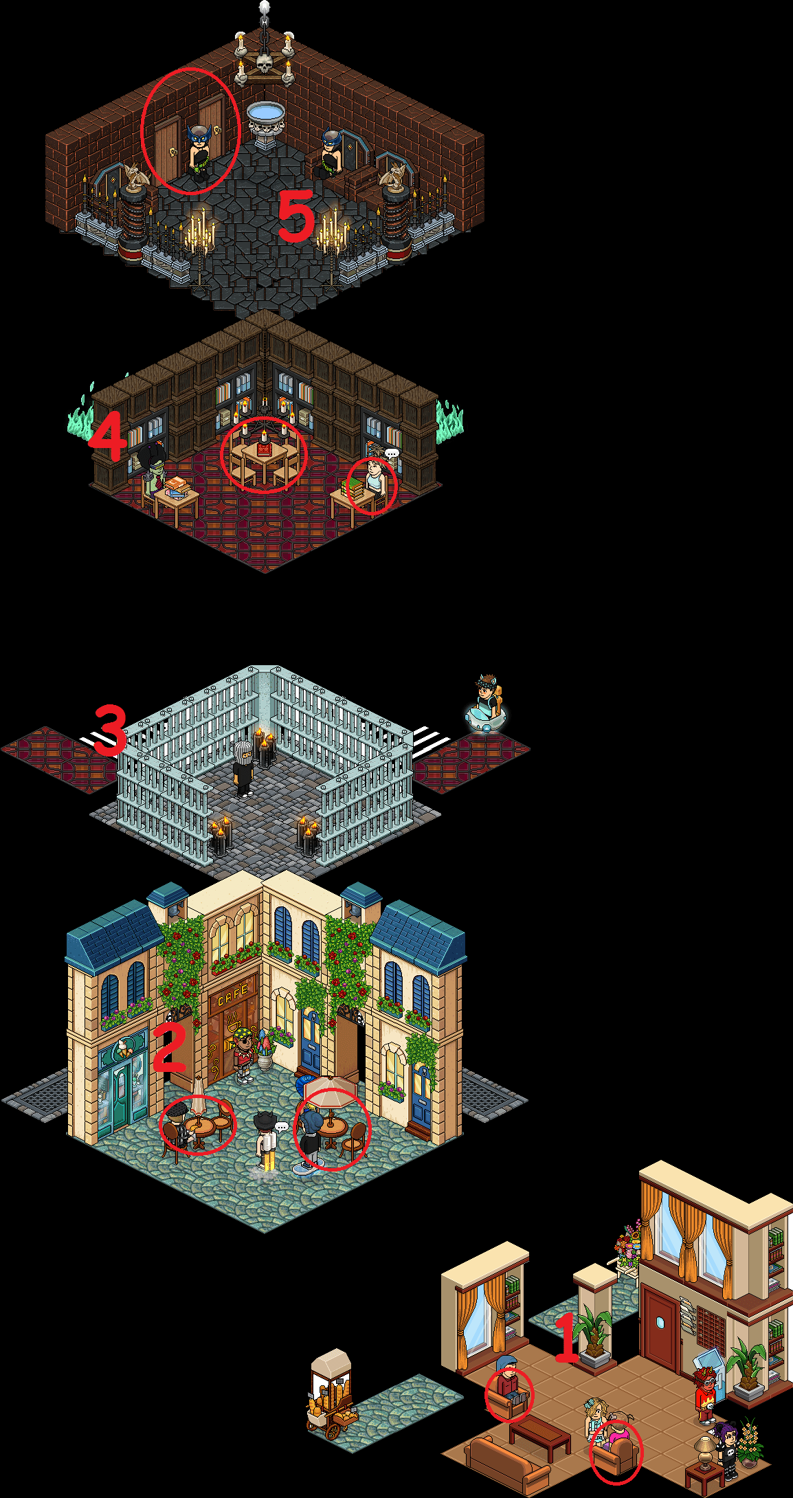 El juego tratará de sentarte en las zonas marcadas con el círculo rojo y responder correctamente a las preguntas cuando el bot te las lance: