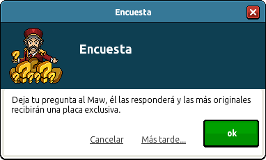 Tal y como se especifica en la noticia oficial de Habbo Hotel España, podrás hacer una pregunta al Master At Work –chiz–. A los pocos segundos de ingresar a la sala aparecerá un cuestionario donde podrás dejar tu pregunta. El 9 de abril la encuesta será cerrada y se seleccionarán 15 preguntas. Si tu pregunta fue seleccionada recibirás la placa que verás a continuación: