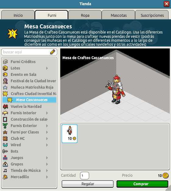 Con la llegada de la campaña Ciudad Invernal, han salido también los crafteos que te hemos anunciado hace un par de días atrás. Con los crafteos podrás limpiar tanto las siete nuevas prendas de ropa. Tendrás que adquirir en el catálogo la mesa de crafteo Cascanueces y las dos matrioshka roja y Santa Claus. Sin nada más que decir, te dejamos con las imágenes: