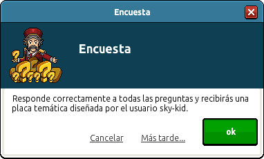 La Campaña de nuestro Master At Work sigue su curso. ¿Estás disfrutando en el Parque de MaWTracciones? Pues todavía no ha terminado, pues nos aguarda en la sala principal una encuesta con la que podremos recibir una placa si respondemos correctamente a ocho preguntas. No te preocupes si no sabes las respuestas, pues en HabboTemplarios te las dejaremos para que no te equivoques.