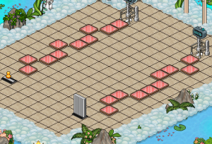 Atraviesa el camino sin pisar las casillas rojas, ya que las mismas estarán en movimiento descendente.