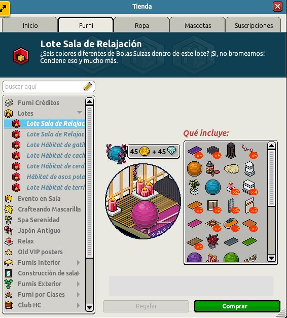 Este tercer lote recibe el nombre de «Lote Sala de Relajación» y es la segunda vez que está disponible ya que se trata de un lote reciclado. Podrás hacerte con él por un precio de 45
