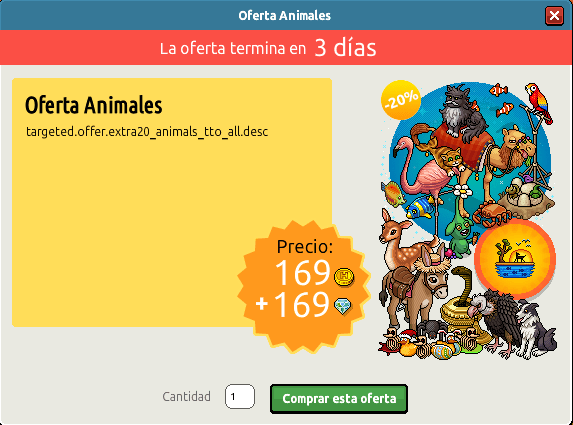 Estamos haciendo referencia a la Oferta Animales, la cual se encuentra disponible durante un tiempo limitado a un precio de 169