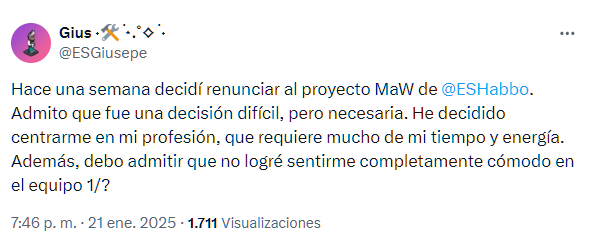 Este es el gran ejemplo de que Habbo no se puede llegar a convertir en tu vida, porque eso está fuera. Mucha suerte en el ámbito laboral Giu.