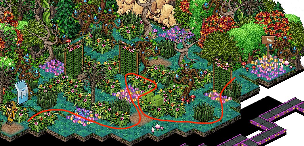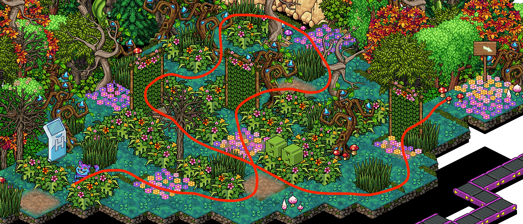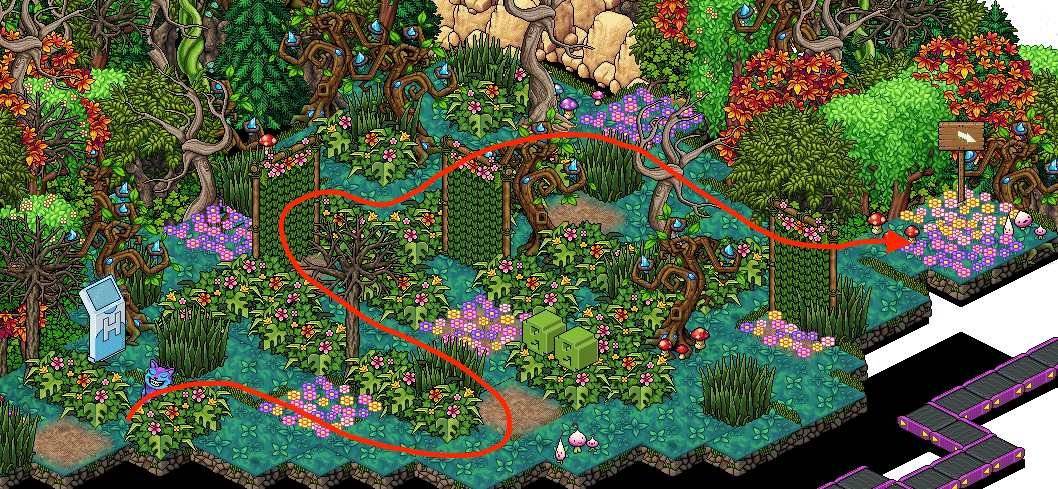 Si logras pasar por el camino correcto, llega hasta las flores y písalas para recibir la siguiente placa: