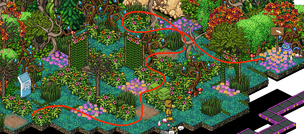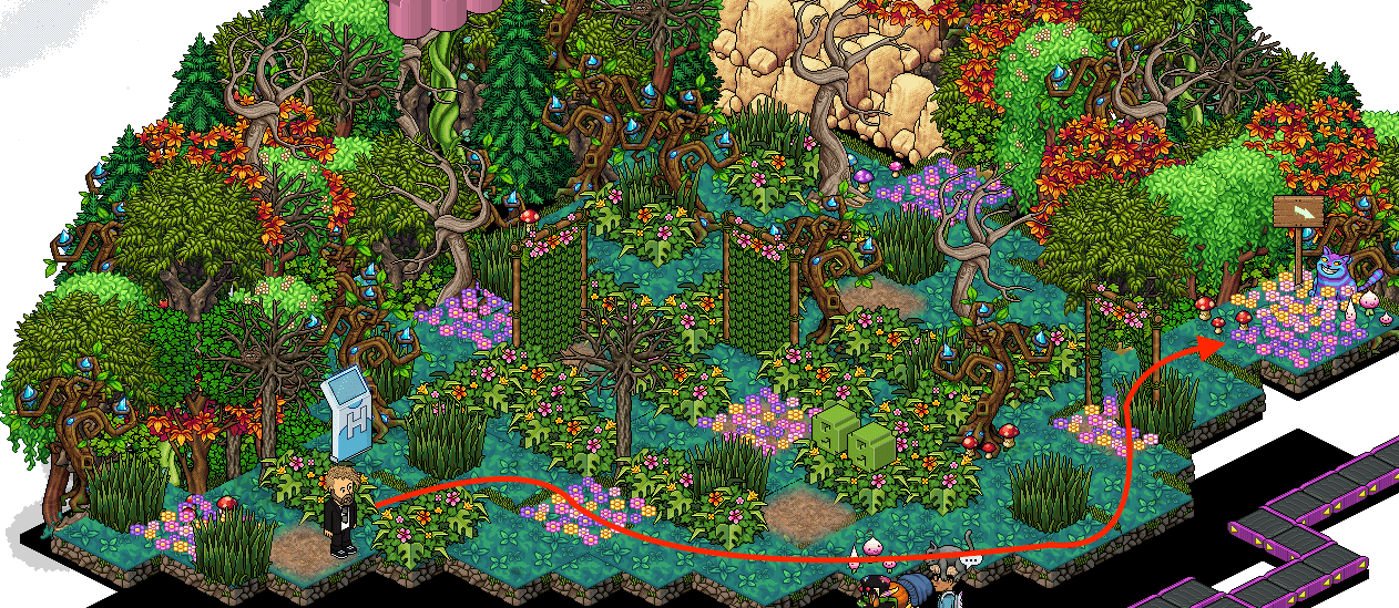 Lo primero que deberás hacer es entrar a la sala de Sefos llamada «[EFT] Cuento de Hadas: Sala de Inicio» y pisar la casilla azul que te mostramos en la imagen para, posteriormente, acceder por el teleport: