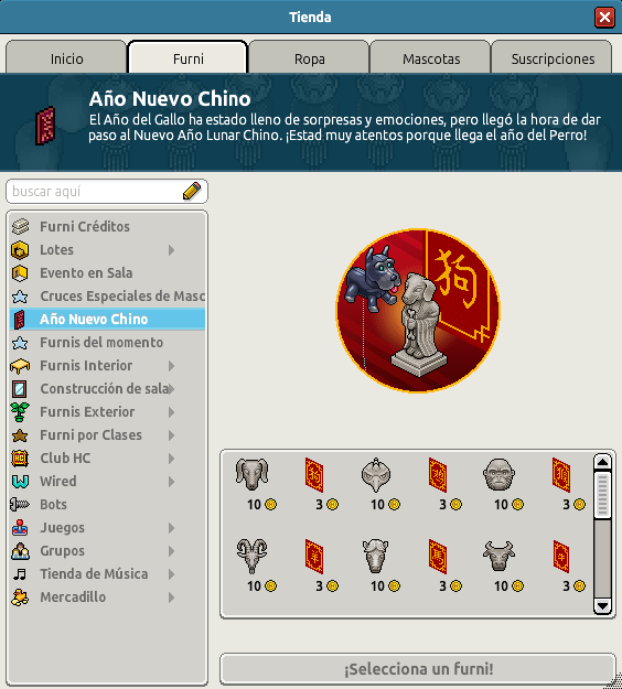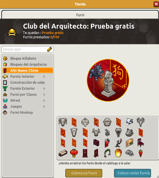 Y tal y cómo te imaginarás, se trata de la sección Año Nuevo Chino, que lo tendrás disponible tanto en nuestro catálogo de furnis como en el Club del Arquitecto, donde podrás elegir entre todos los furnis que han ido saliendo, hasta ahora, en esta campaña china. ¡Por lo que si eres un amante de la cultura oriental, este es tu comento! Para finalizar, os vamos a dejar con unas imágenes para que sepas dónde poder comprar estos hermosos furnis: