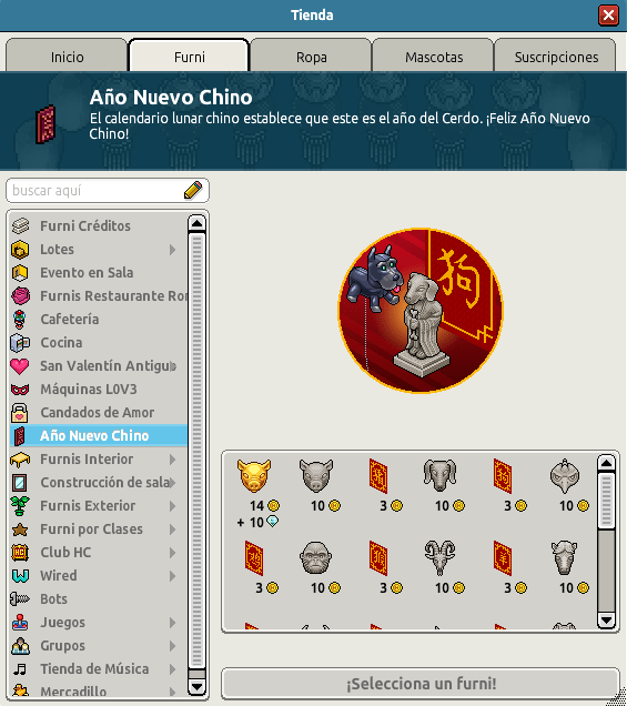 Y tal y cómo te imaginarás, se trata de la sección Año Nuevo Chino, que lo tendrás disponible tanto en nuestro catálogo de furnis como en el Club del Arquitecto, donde podrás elegir entre todos los furnis que han ido saliendo, hasta ahora, en esta campaña china. ¡Por lo que si eres un amante de la cultura oriental, este es tu comento! Para finalizar, os vamos a dejar con unas imágenes para que sepas dónde poder comprar estos hermosos furnis: