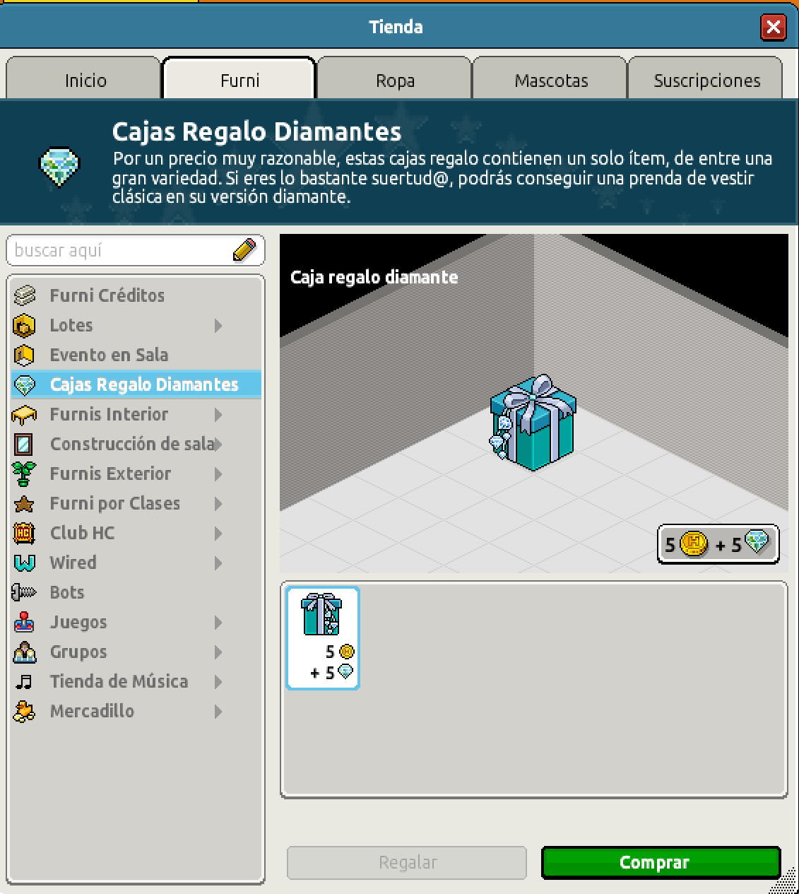 , con este furni podrás conseguir tres prendas diamantes o furnis aleatorios, que nos acompañarán en nuestra estancia en el hotel. Esta ya será la última vez que estarán disponibles en el catálogo, así que adquiere cuantas más puedas antes de que sean retiradas: