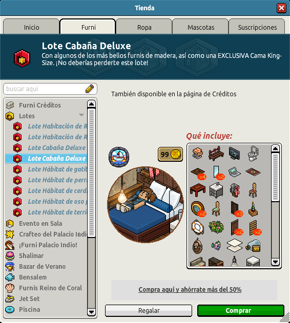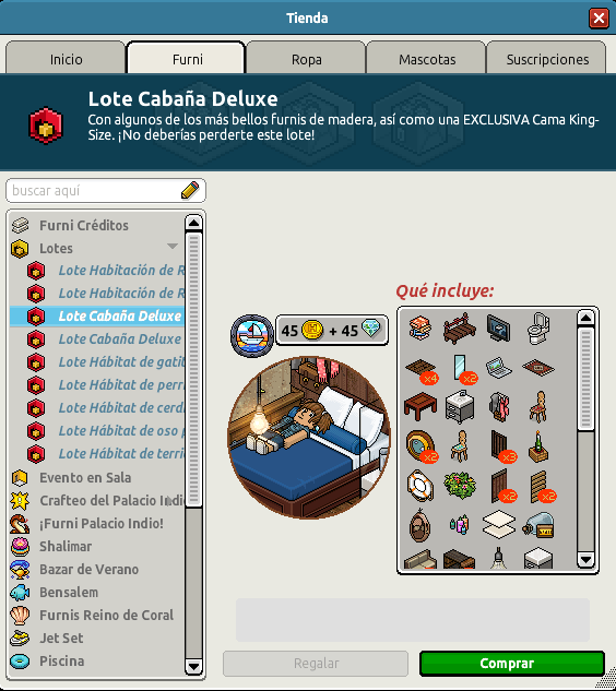 Estamos haciendo referencia al Lote Cabaña Deluxe, esta hermosa sala se encuentra en venta al módico precio de 45