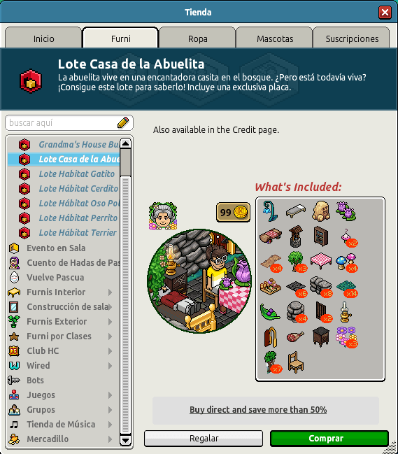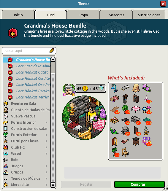 Te hablamos, sin lugar a dudas, del Lote Casa de la Abuelita. La abuelita vive en una encantadora casita en el bosque. ¿Pero sigue viva? ¡Hazte con este lote y descúbrelo! No olvides que estará disponible por tiempo limitado y por un precio de 45
