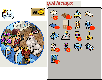 . ¡Cómpralo, pero cuida bien de tanto estilo! Te traemos una imagen con con los precios y la especificación de todos los furnis que contienen el lote.