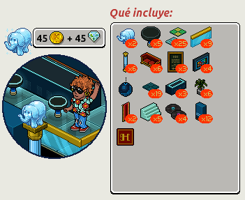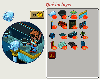 Cabe destacar que este lote solamente estará disponible para aquellos usuarios que sean miembros del Habbo Club. También, este lote incluye dos elefantes HC exclusivos para que seas la envidia del Hotel.