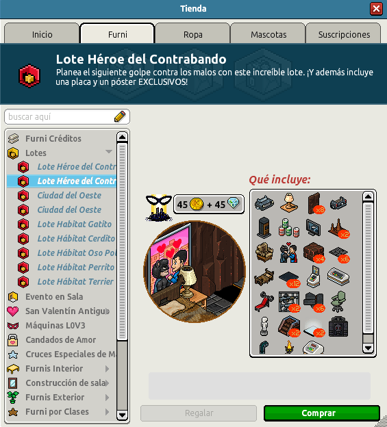 Te hablamos del Lote Héroe de Contrabando y se trata del decimocuarto lote de la campaña de enero. No olvides que estará solo por tiempo limitado e incluye una placa exclusiva. Sin nada más que añadir, te dejamos con las imágenes y con los furnis que contiene: