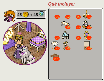 y estará disponible durante una semana. Te traemos una imagen con con los precios y la especificación de todos los furnis que contienen el lote.